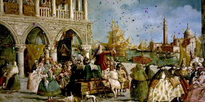 L’une des toutes dernières fresques peintes par Domenico Tiepolo dans l’intimité de sa villa familiale, au moment où Bonaparte s’empare de la république libre de Venise, est une vibrante métaphore du destin de sa ville. Le carnaval est interdit, et la capitale des plaisirs, qui faisait la fête des semaines durant pour tenter d’oublier son inexorable déclin, doit dire adieu à l’insouciance…