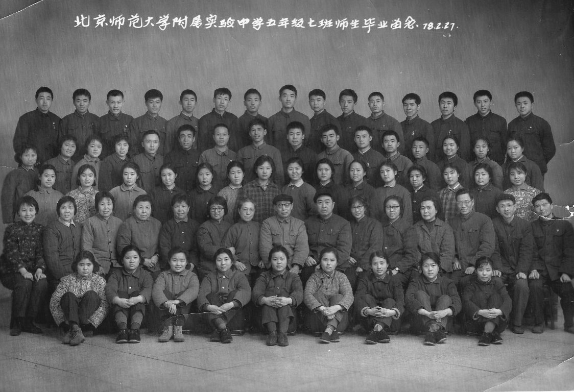 注:上面照片为1978年北京【(师范大学附属)实验中学】部分同学留影,人不多时,是因为已下课,很多同学不在了