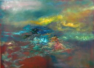 Au regard des œuvres de l’artiste MICHEL TONG, on pourrait rappeler des lumières qui pénètrent à travers des nuages, les caprices des nuages, comme des vagues de plus en plus pures, on pourrait évoquer des images comme concentration des nuages avant l’orage ; on pourrait représenter une brume épaisse qui rampait dans la vallée, le fleuve qui tourbillonne ; on pourrait se figurer le mystère des étoiles, des nébuleuse spirales et l’évolution de l’univers ; on pourrait se souvenir de l’éclat de la soie avec sa brillance ; on pourrait faire revivre la nature, le monde en miniature …