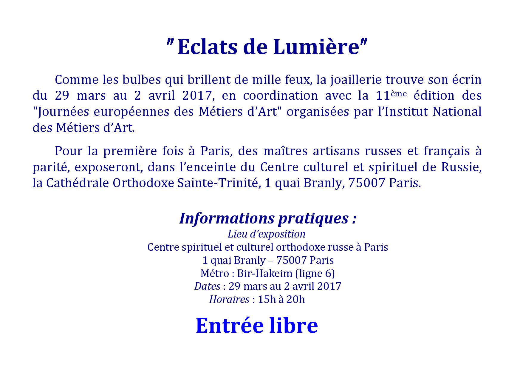 俄罗斯教精神和文化中心CSCOR活动”Eclats de Lumière”